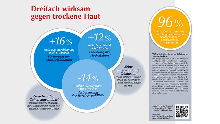 Da die Formulierung der GEHWOL MED Lipidro Creme mit verschiedenen Feuchthaltesubstanzen und Lipiden die Mikrozirkulation der Haut sowie die Hautbarriere verbessert und die Hautfeuchtigkeit erhöht, ohne dabei okklusiv zu wirken oder die Keimdichte zu erhöhen, könne sie für Diabetiker empfohlen werden, so das Resümee der Autoren. Dies gelte auch für den Bereich zwischen den Zehen, sofern bestehenden Hautauffälligkeiten nicht grundsätzlich eine dermatologische Therapie erfordern.